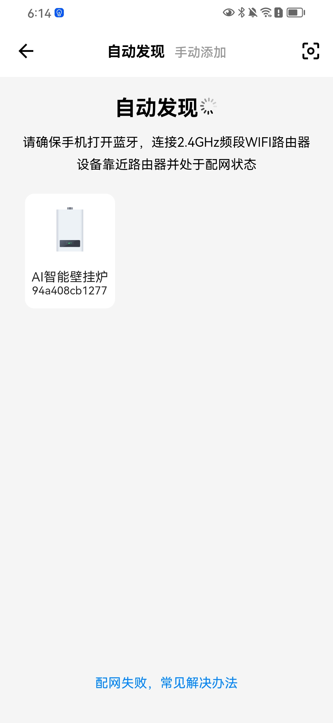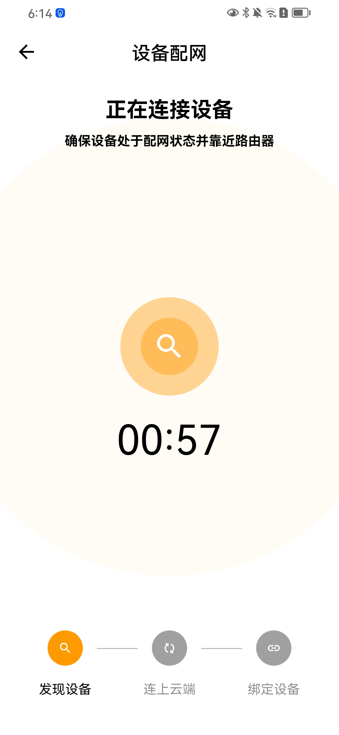 关机状态下,长按Wi-Fi键3秒,触发设备进入配网状态,几秒后,app应该会搜索到设备