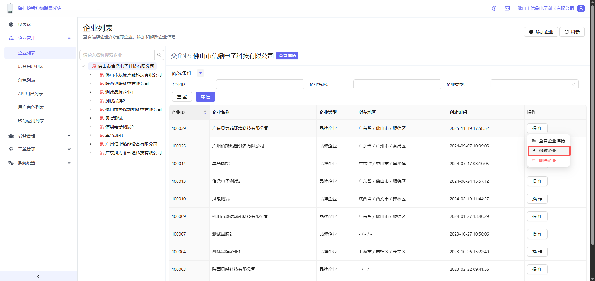 选择需要修改的企业,选择操作里的“修改企业”按钮。修改的字段跟添加企业的一致。