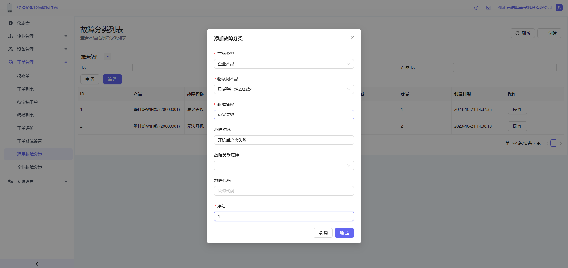 ⚠️ 注意:如果品牌企业没有自定义故障分类,系统将使用预设的通用的故障分类;如果企业品牌有添加自定义的故障分类,则优先使用自定义的故障分类
